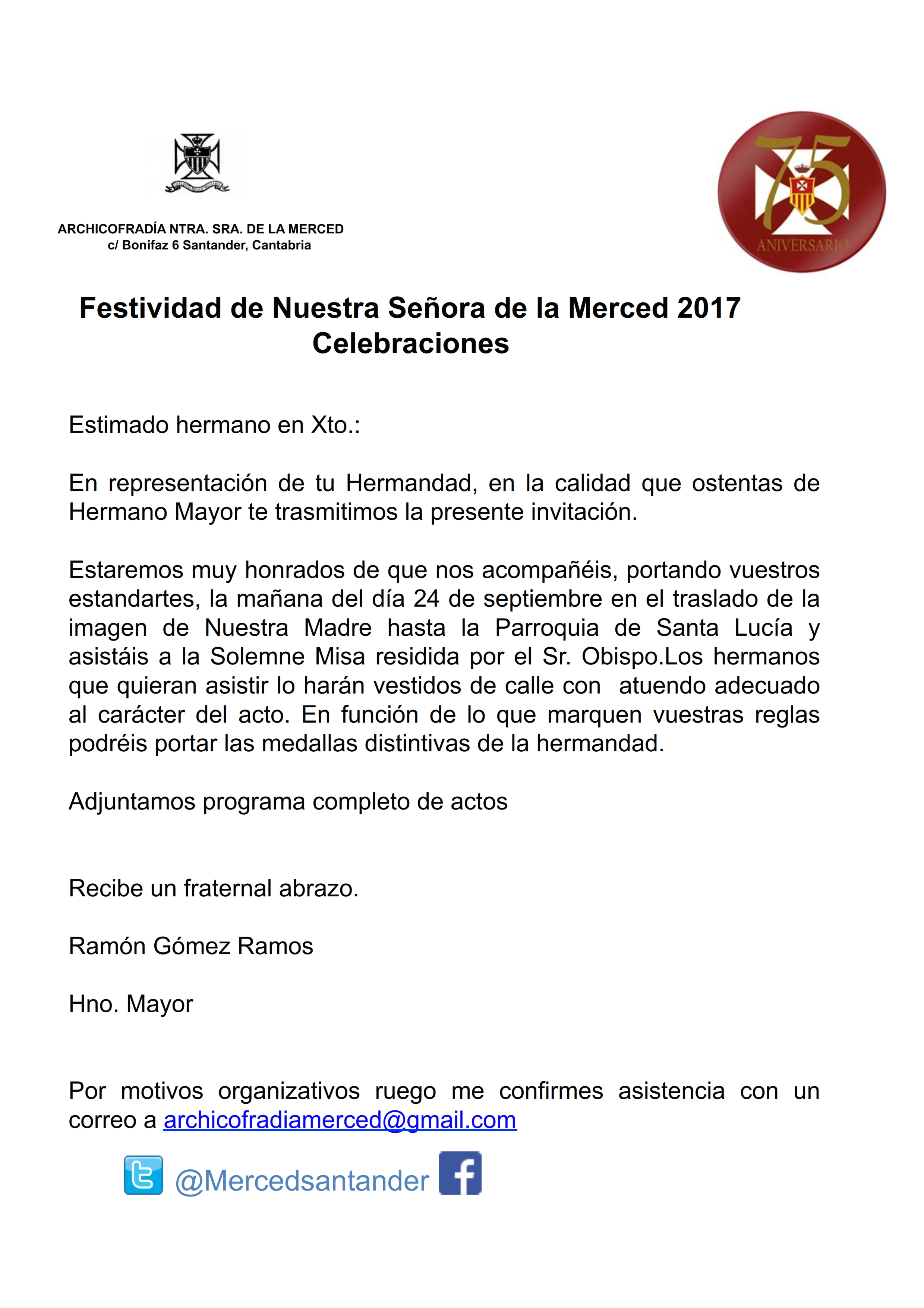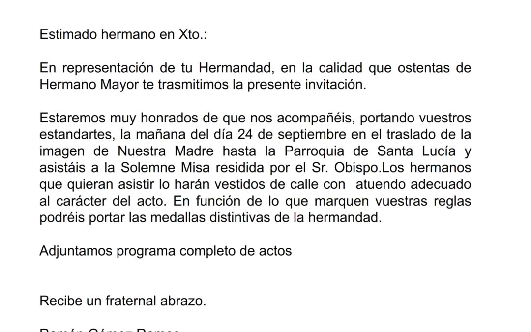 Invitación Archicofradía de la Merced festividad Ntra Sra de la Merced 2017 por | Sep 21, 2017 | 0 Comentarios Enviar comentario Cancelar la respuestaTu dirección de correo electrónico no será publicada. Los campos obligatorios están marcados con *Comentario * Nombre * Correo electrónico * Web Guarda mi nombre, correo electrónico y web en este navegador para la próxima vez que comente. Δ Este sitio usa Akismet para reducir el spam. Aprende cómo se procesan los datos de tus comentarios.